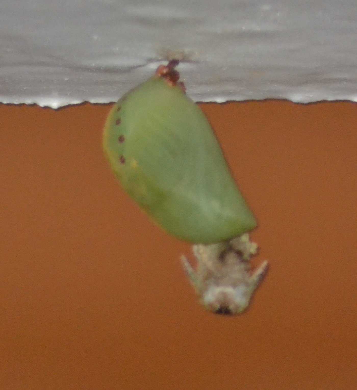 Last week Matt noticed a caterpillar hanging from his door frame - he left it and look what has happened.........